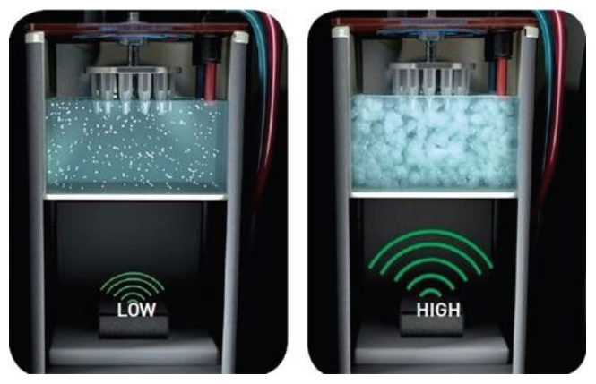 SCIENTZ08-IIIA超聲波DNA打斷儀采用在水槽底部安裝超聲波發(fā)生裝置的設(shè)計,傳統(tǒng)的探頭式超聲波引起的微流動現(xiàn)象和超聲波空化效應(yīng)只能在靠近探頭的區(qū)域出現(xiàn),單位面積的聲強大但超聲輻射面小,而非接觸式超聲波DNA打斷儀由于在水槽底部安裝了超聲波換能器,使水槽完全處于超聲波的作用范圍內(nèi),超聲作用分布廣泛而均衡, 降低了泡沫的形成。在實驗過程中,SCIENTZ超聲非接觸式粉碎機自動的連續(xù)旋轉(zhuǎn)離心管則使超聲波的能量分布更為均勻。