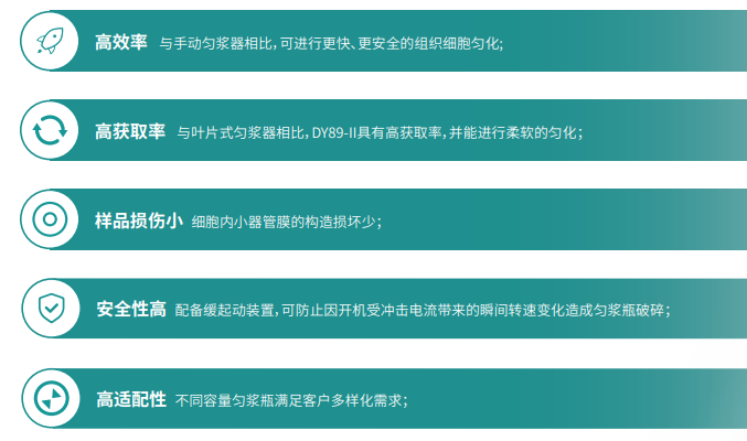 ? 高效率 與手動勻漿器相比,可進行更快、更安全的組織細胞勻化 |
