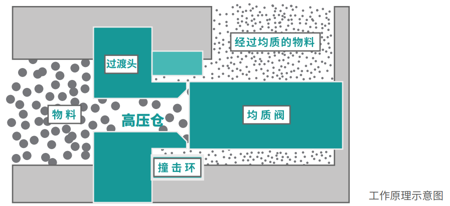 物料由物料杯經單向閥進入高壓倉,通過柱塞伸縮加壓使樣品達到所調節控制的高壓下,通過特定寬度的限流縫隙瞬間釋放形成微射流撞擊沖擊閥或均質閥上,依次經過空穴、撞擊、剪切的作用來達到物料的乳化分散和細胞粉碎機的目的。