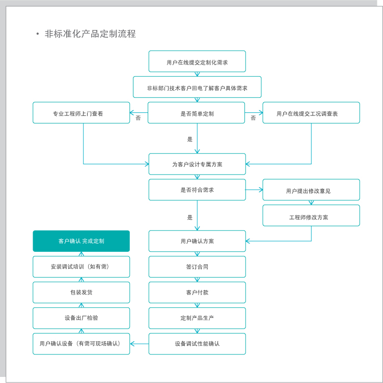 我公司擁有所有非標準化產品的全部自主知識產權和設計細節。公司承諾實時解決用戶對產品的技術、應用需求,對部分易損耗器件或備件的技術問題提供全天候、及時的技術咨詢服務和問題解決機制。